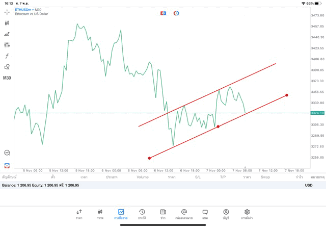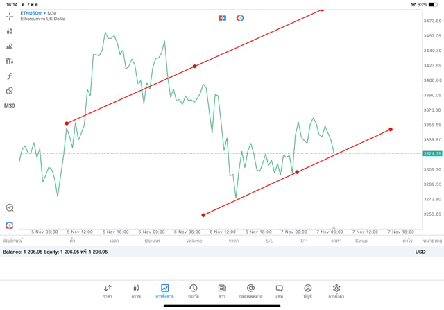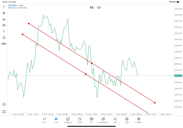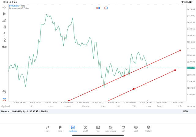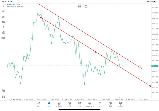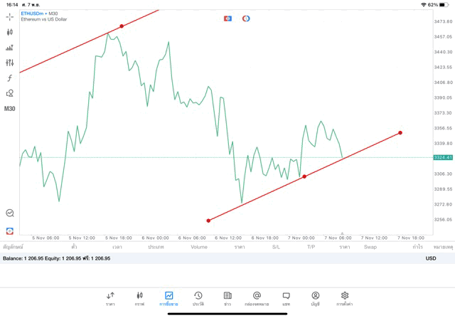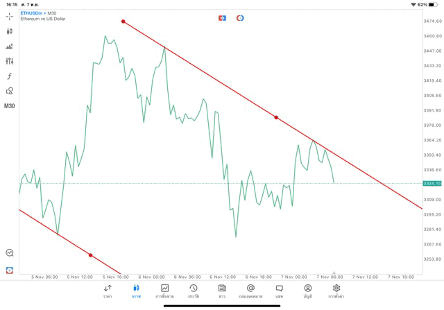วิธีวาด Trendline ETHUSD กรอบ timeframe 30 นาที หรือ M30 แอพเล่นหุ้น Mt5