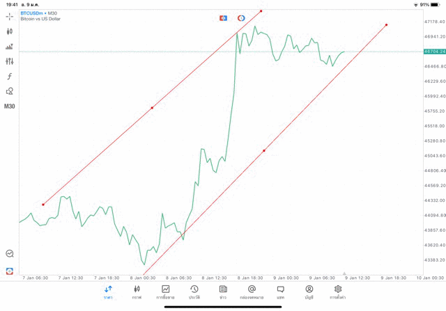 วิธีวาด Trendline BTCUSD กรอบไทม์เฟรม 30 นาที หรือ M30