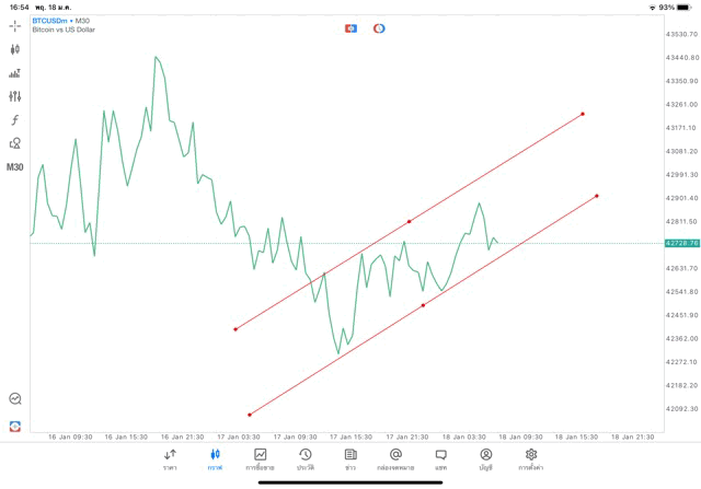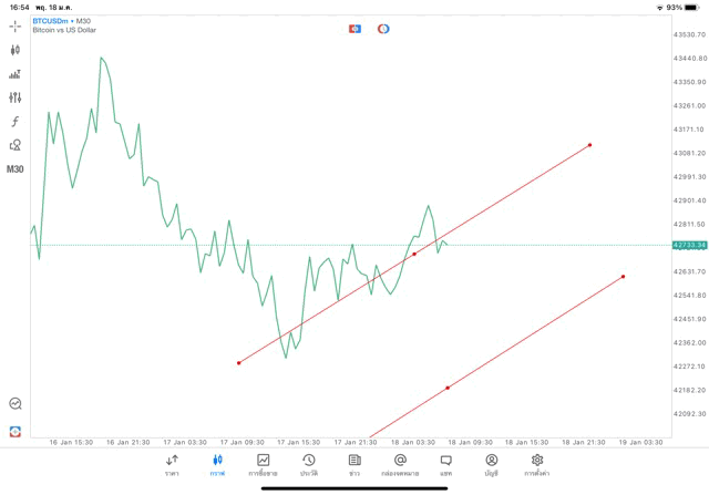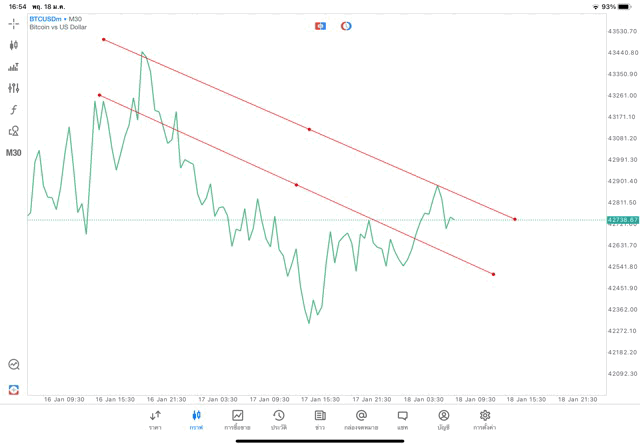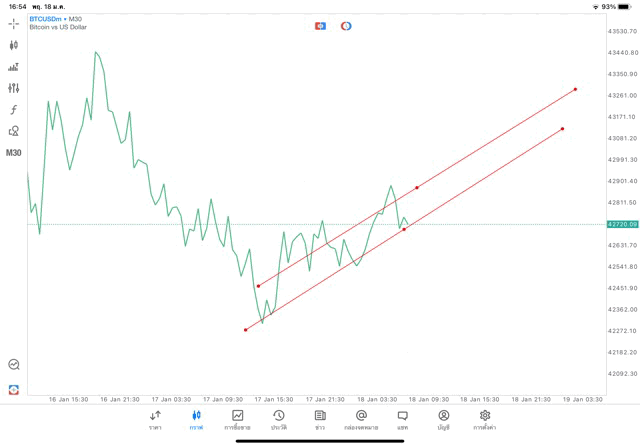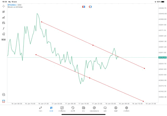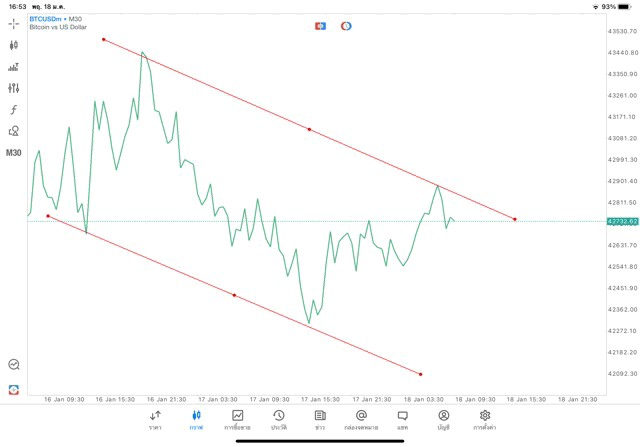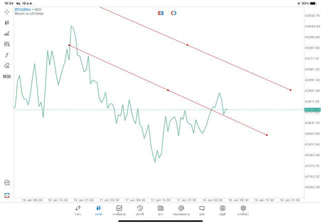 18/1/24 วาด Trendline M30 BTCUSD mt5 exness