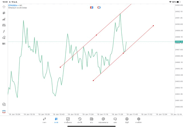 วิธีเลือกไทม์เฟรมและเพิ่มเส้นเทรนด์ไลน์ แอพ mt5 – คลิ๊ก –