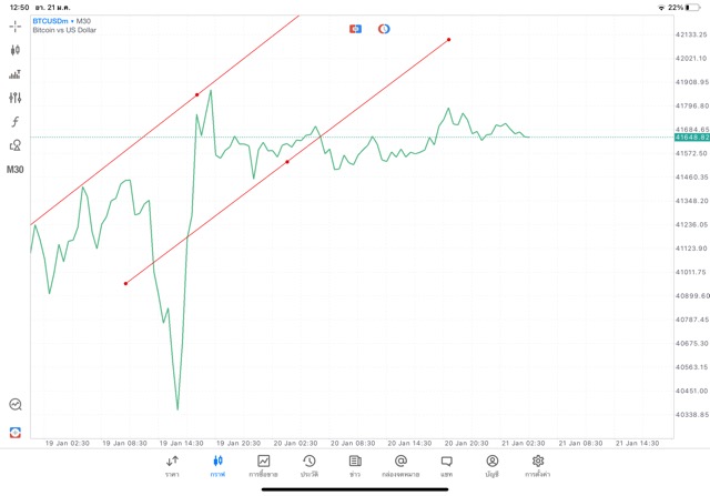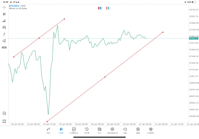 21/1/24 วาด Trendline M30 BTCUSD mt5 exness