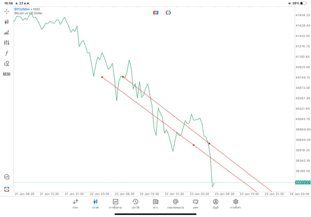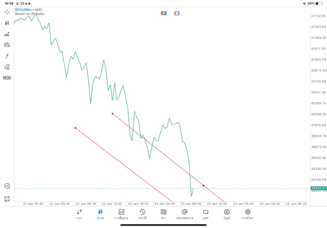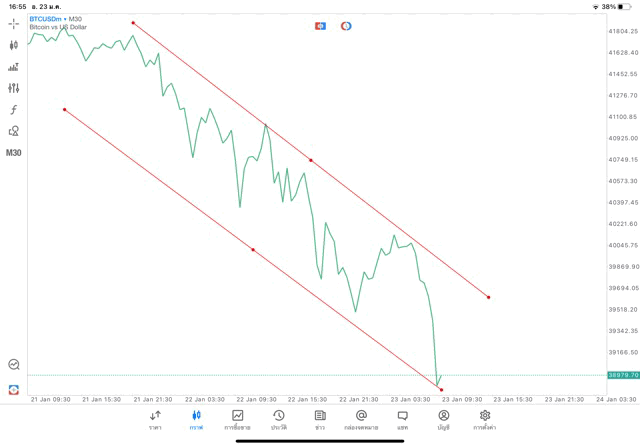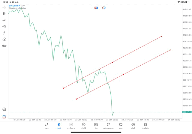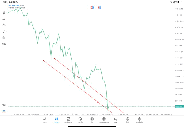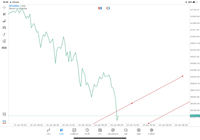 23/1/24 วาด Trendline M30 BTCUSD mt5 exness