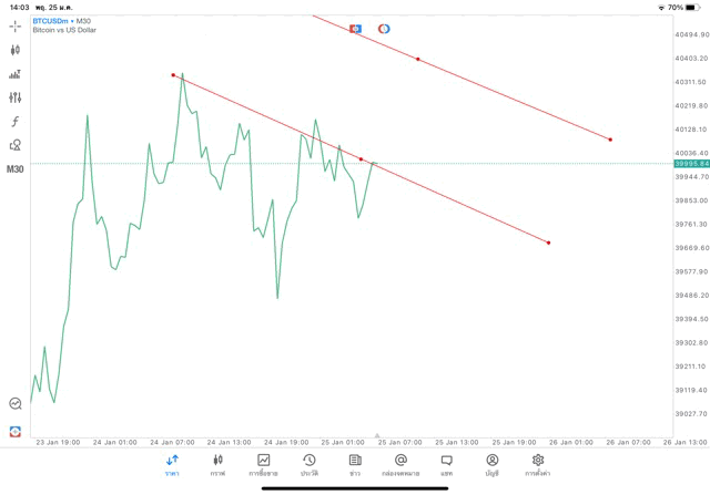วิธีวาด Trendline BTCUSD กรอบไทม์เฟรม 30 นาที หรือ M30