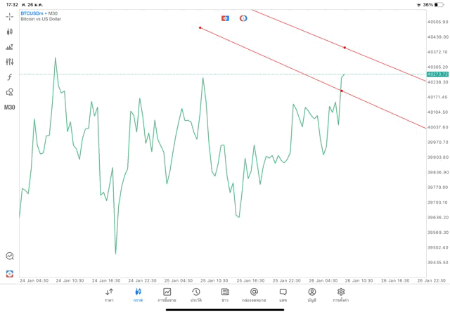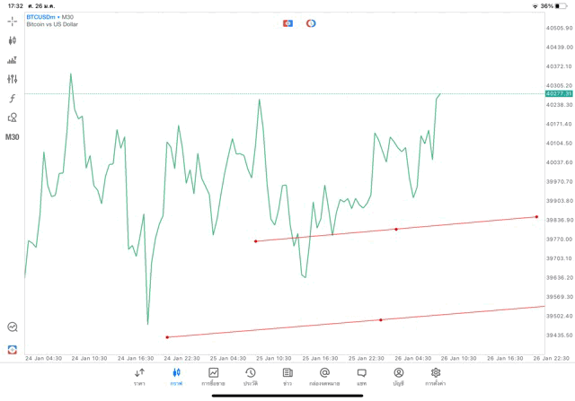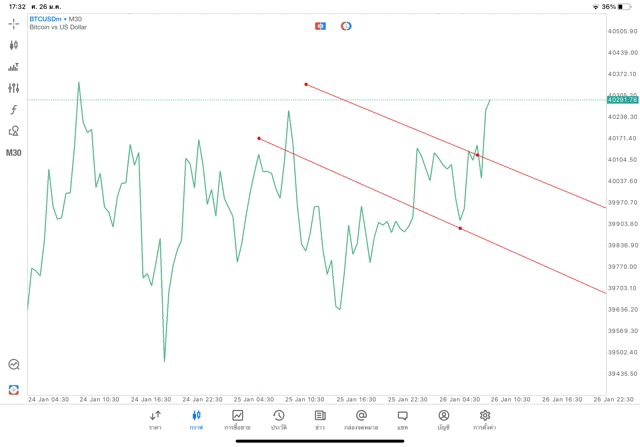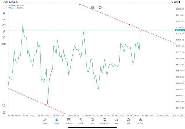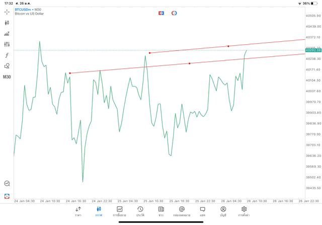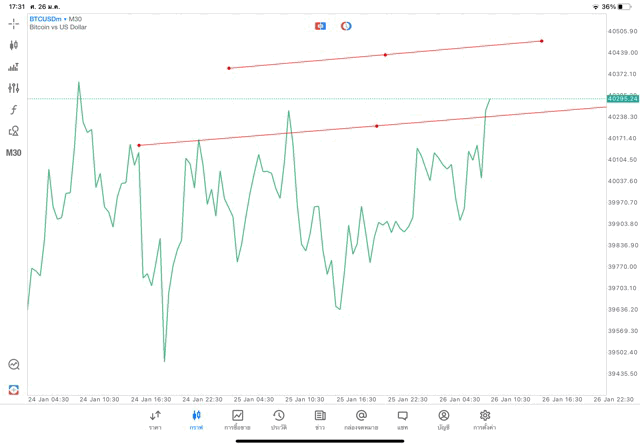 26/1/24 วาด Trendline M30 BTCUSD mt5 exness