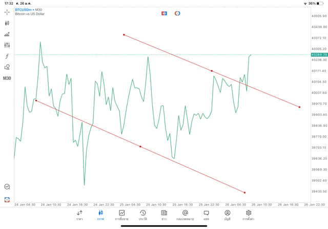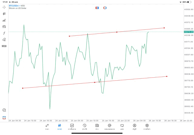 วิธีวาด Trendline BTCUSD กรอบไทม์เฟรม 30 นาที หรือ M30