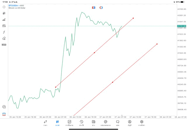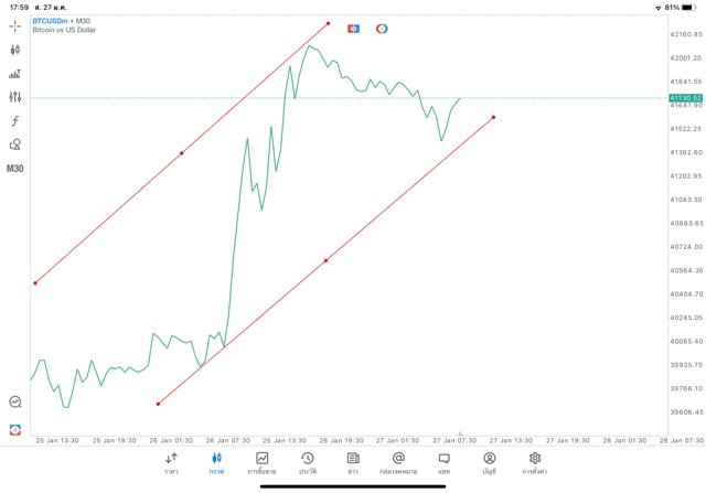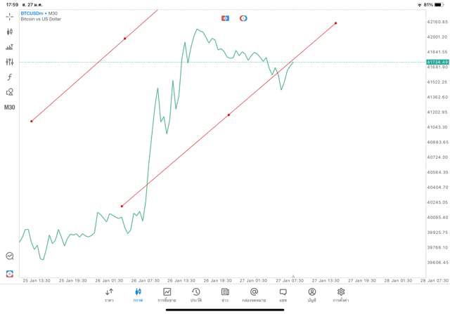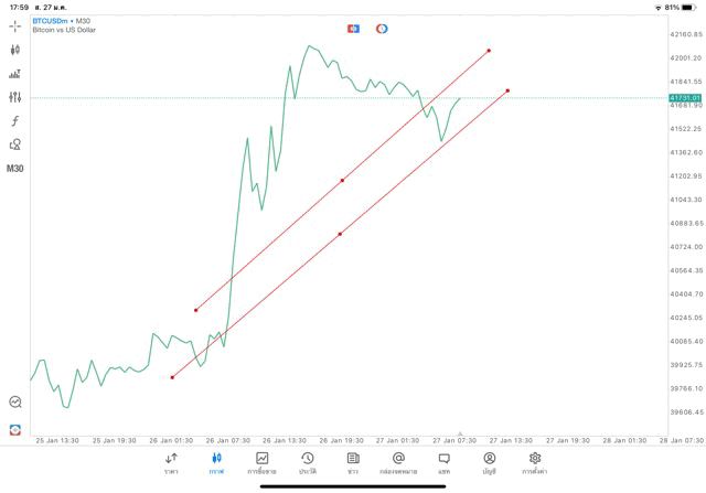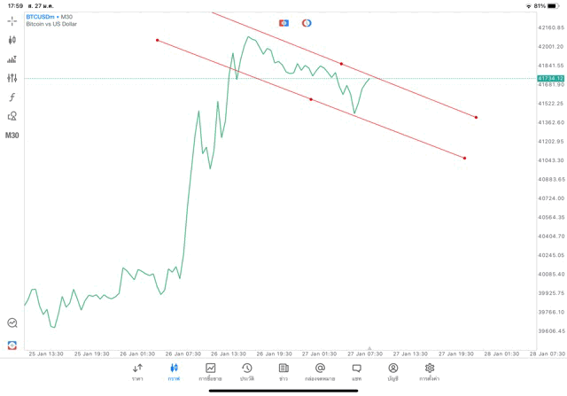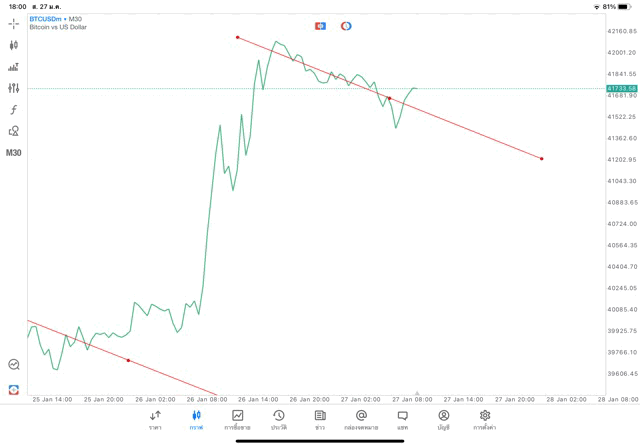 27/1/24 วาด Trendline M30 BTCUSD mt5 exness