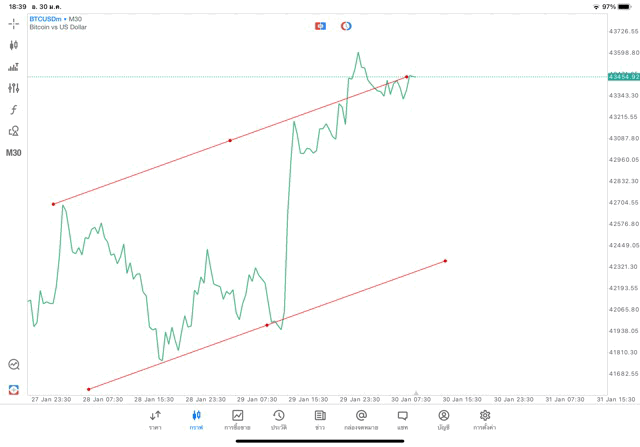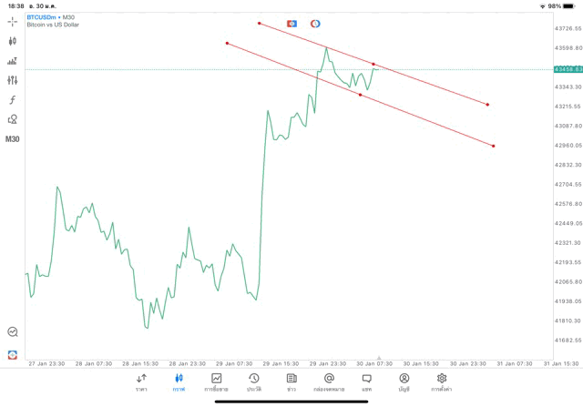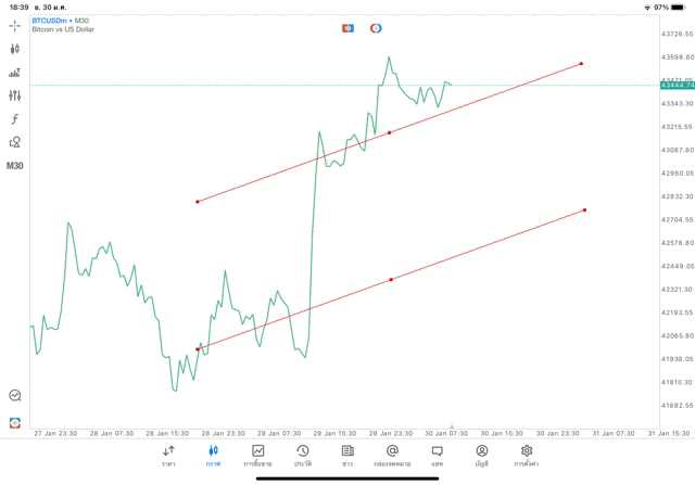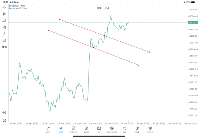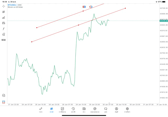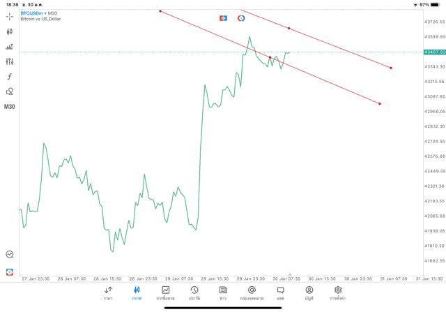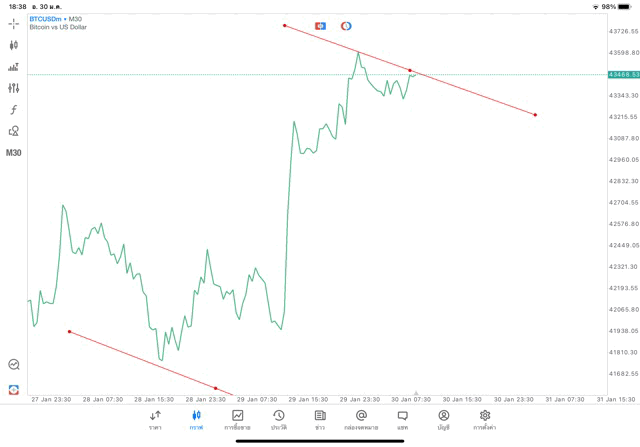 30/1/24 วาด Trendline M30 BTCUSD mt5 exness