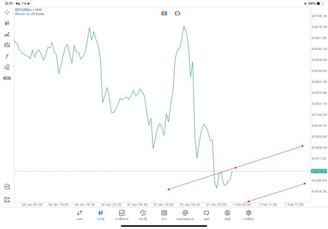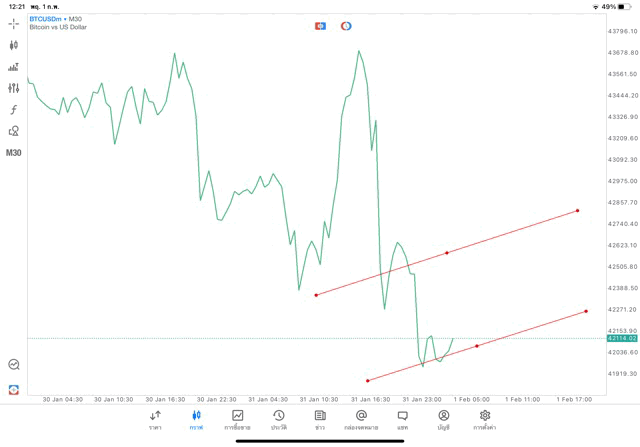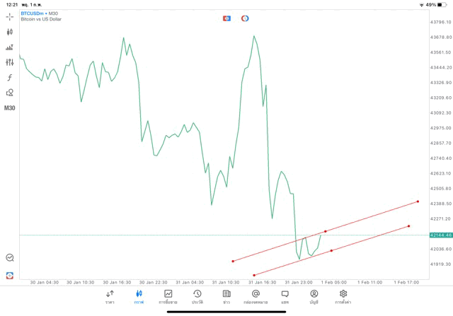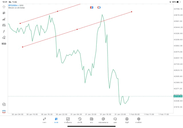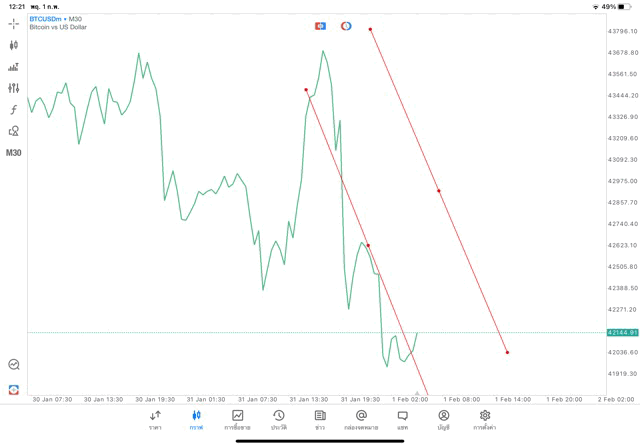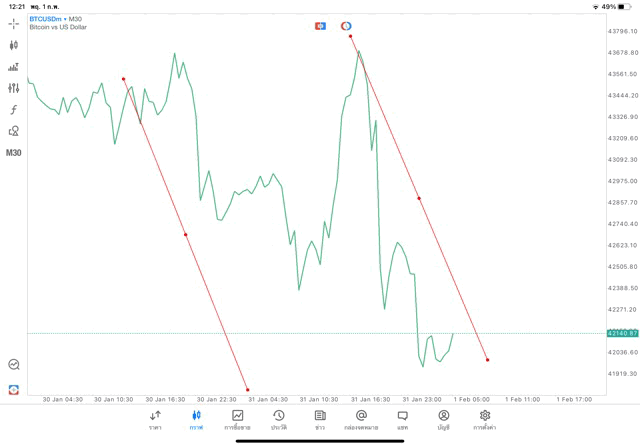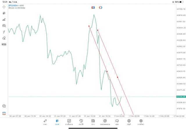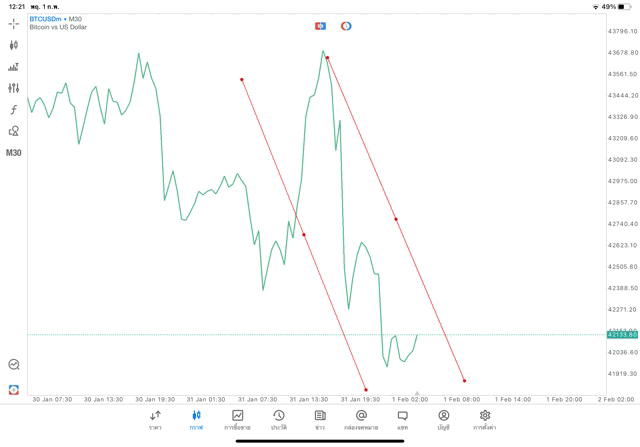 วิธีวาด Trendline BTCUSD กรอบไทม์เฟรม 30 นาที หรือ M30