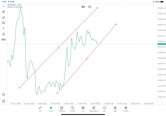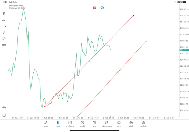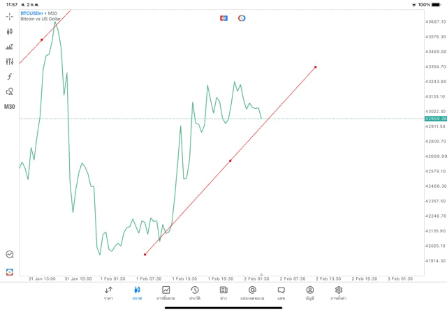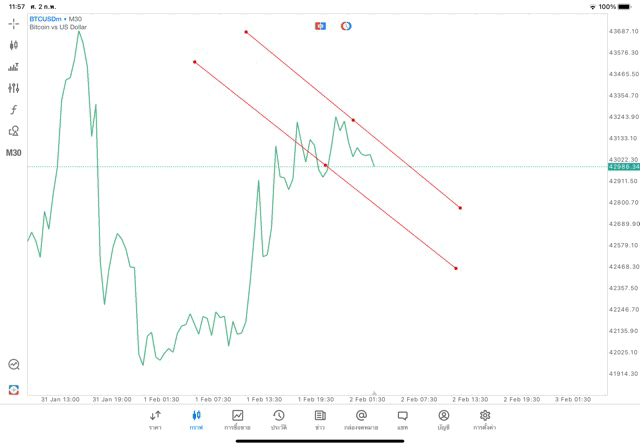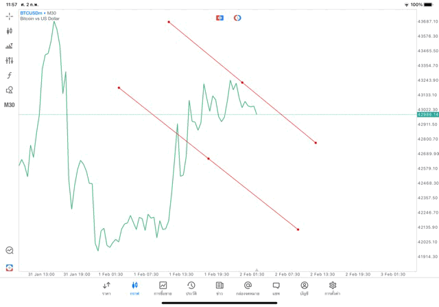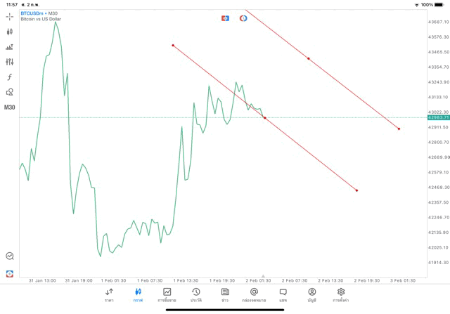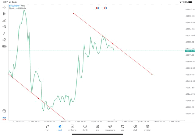 2/2/24 วาด Trendline M30 BTCUSD mt5 exness