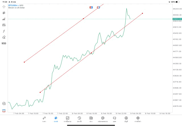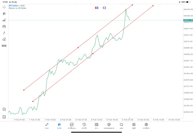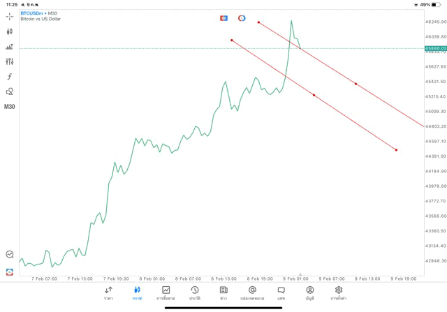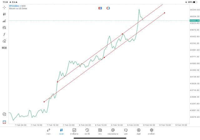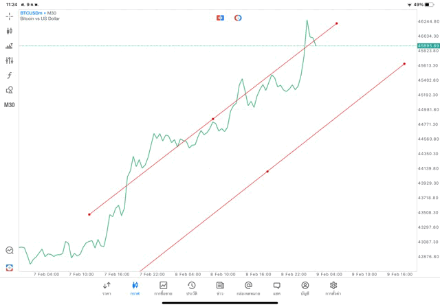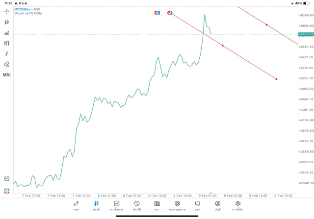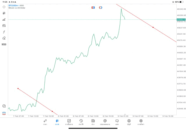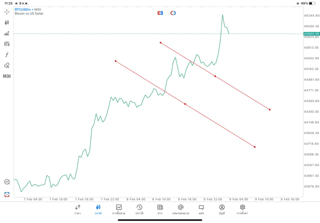 วิธีวาด Trendline BTCUSD กรอบไทม์เฟรม 30 นาที หรือ M30