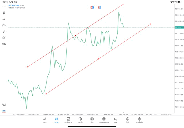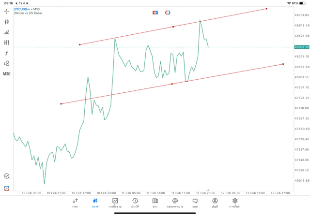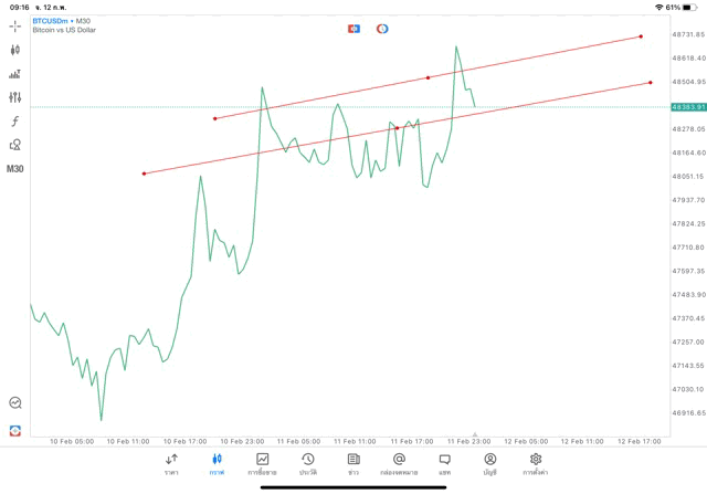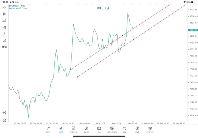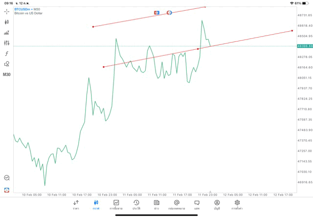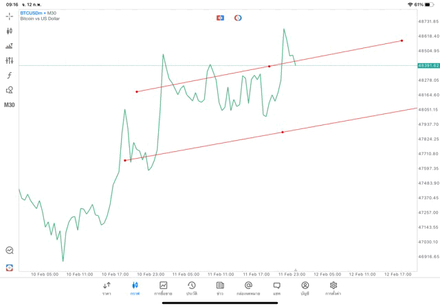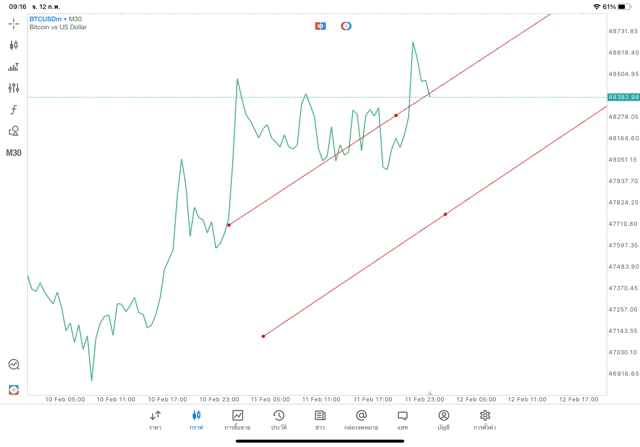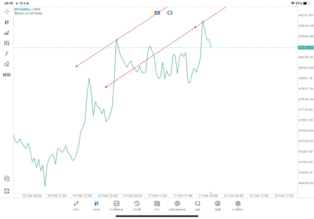 วิธีวาด Trendline BTCUSD กรอบไทม์เฟรม 30 นาที หรือ M30