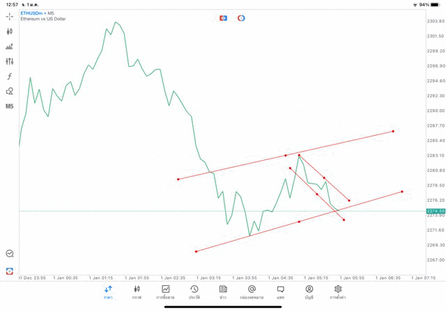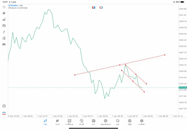 1/1/24 วาด Trendline ETHUSD mt5 exness