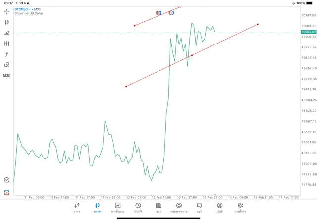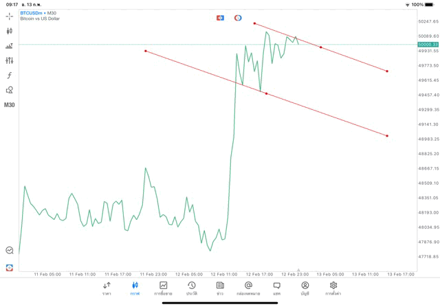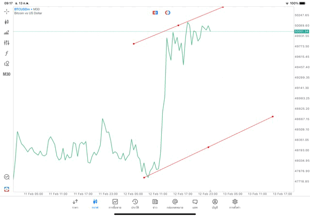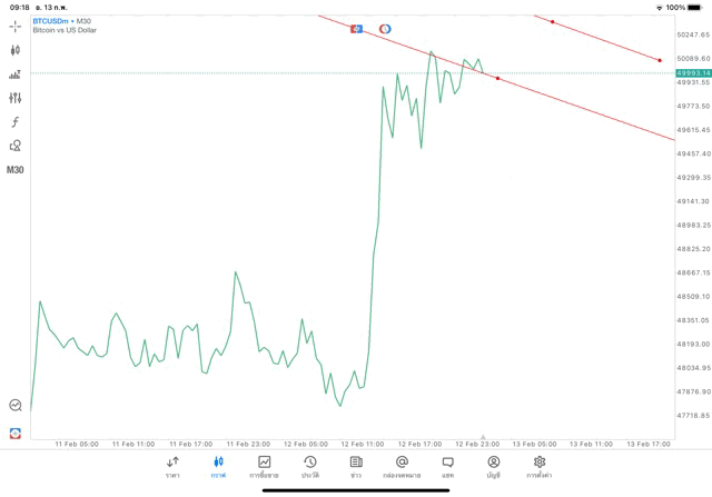 13/2/24 วาด Trendline M30 BTCUSD mt5 exness