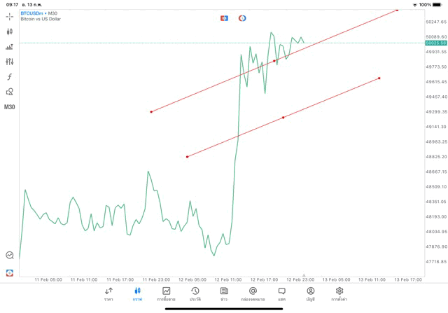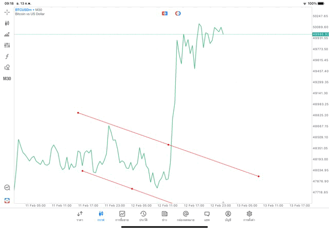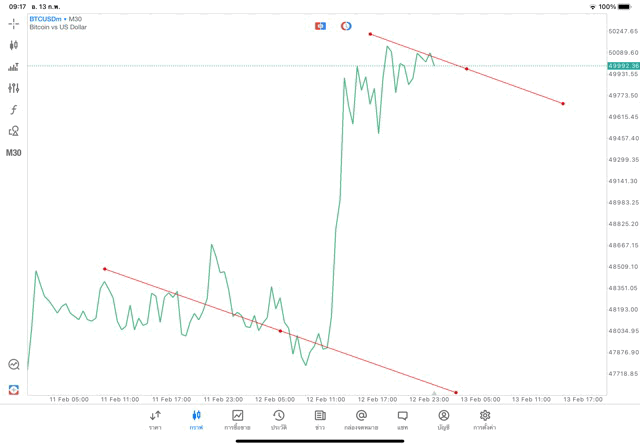วิธีวาด Trendline BTCUSD กรอบไทม์เฟรม 30 นาที หรือ M30
