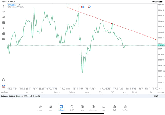 19/2/24 วาด Trendline ETHUSD mt5 exness